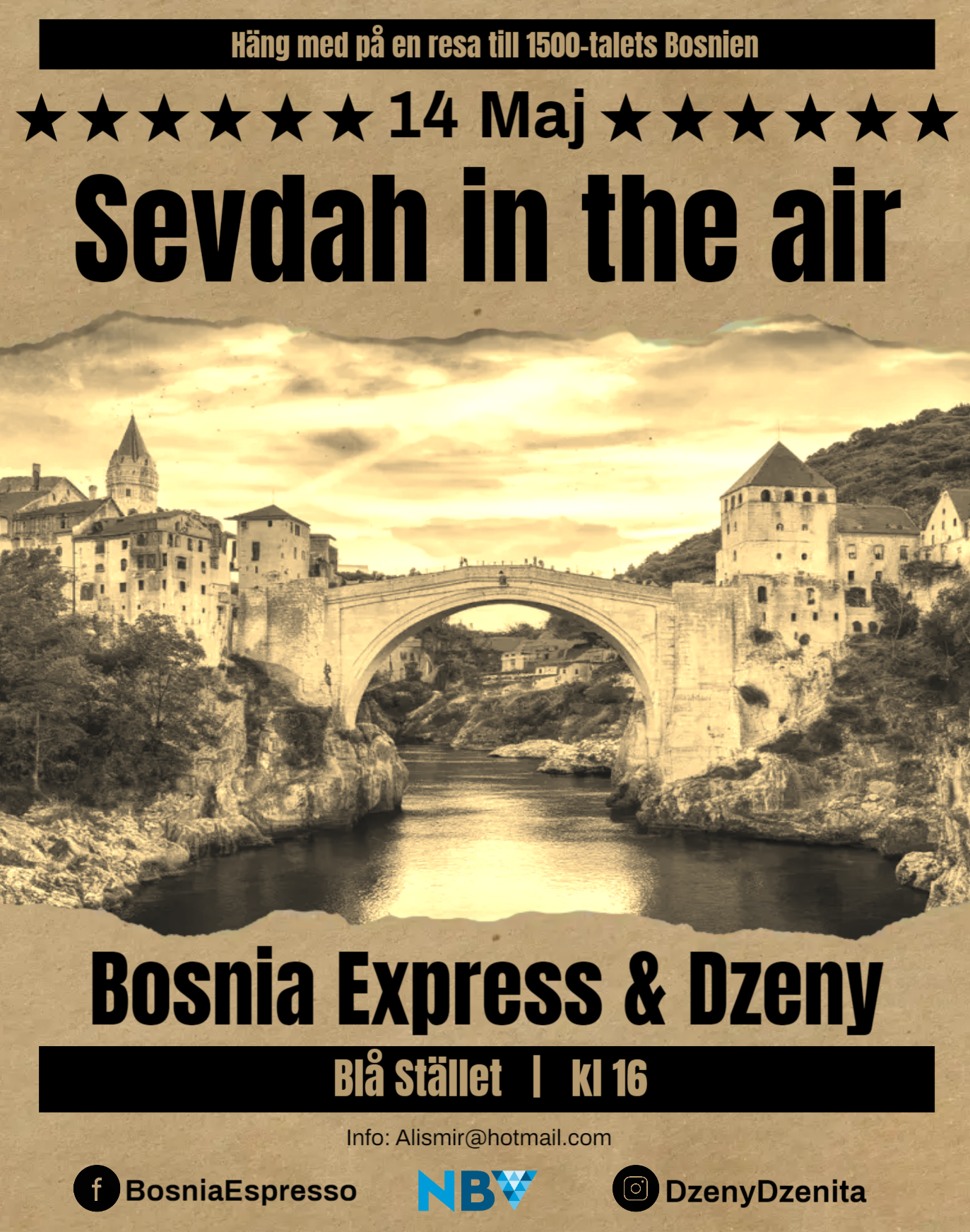 Akustisk spelning med traditionell bosnisk musik sevdah, med Dzeny , inträde fritt.